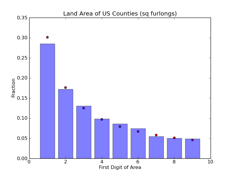 are plotted below. The bars represent the fraction of numbers that start