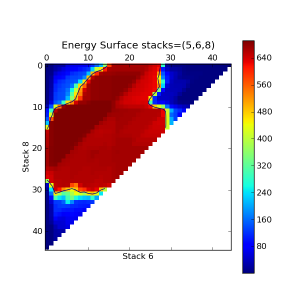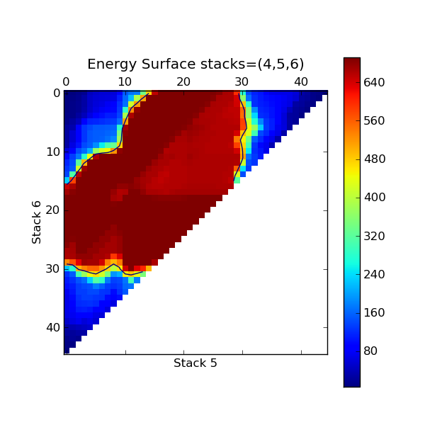 So in the above plot, what I've done is constructed a whole bunch of strategies. First I started with 8 soldiers in all slots but the ones listed in the title, namely slots 4,5,6 (starting with 1). So with only 3 slots free, and with the constraint that we have to have 100 soldiers total, I can parametrize a whole bunch of strategies with only two numbers, in this case the number of soldiers in slot 5 (x axis) and slot 6 (y axis). The color represents the score that the resulting strategy has when run against all of the previously existing strategies in the database. This was created without adding all of these strategies to the database itself as that would have changed the results.
